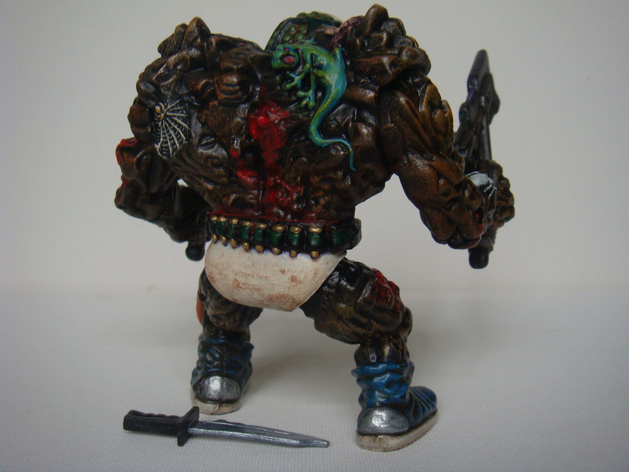 As unstoppable as a landslide, General Traag, leader of Krang's Rock Soldier armies in Dimension X, has one thing on his tiny mind - demolish Turtles. Summoned by Krang to exterminate the Turtles and prepare the way for an invasion from Dimension X, General Traag is grinding like a glacier over everything in his path. This stone-cold killer digs through solid rock with his Anti-Turtle Combat Knife looking for Turtles. In a battle of wits, he may be unarmed but beware of his Laser Blaster. You are in for a shock should you end up on the wrong end of this atom smasher. Traag's Stunlaser gun leaves his enemies dazed, dopey and defenseless - perfect for Turtle shish kabobs or as victims for Krang's diabolical schemes.