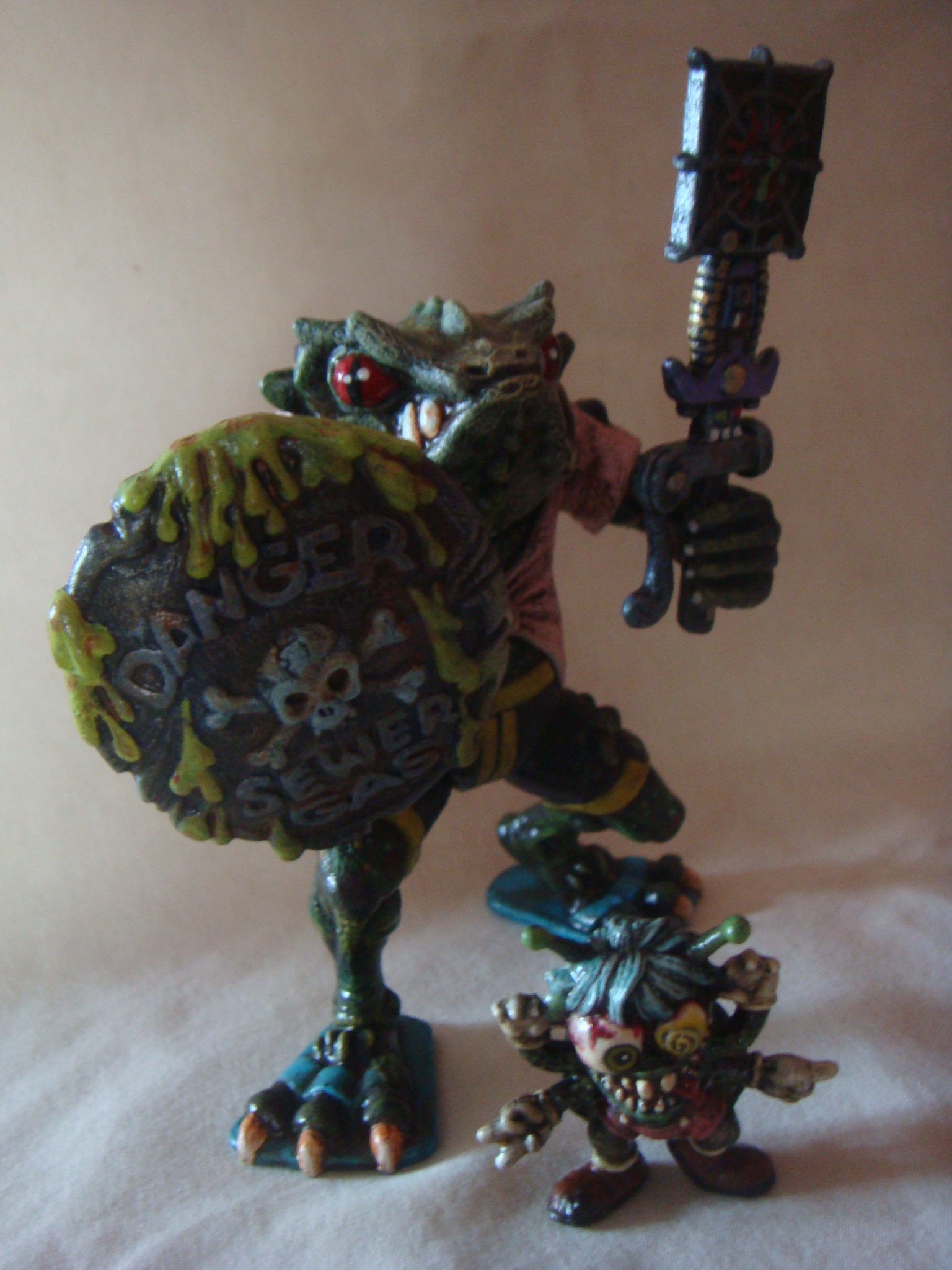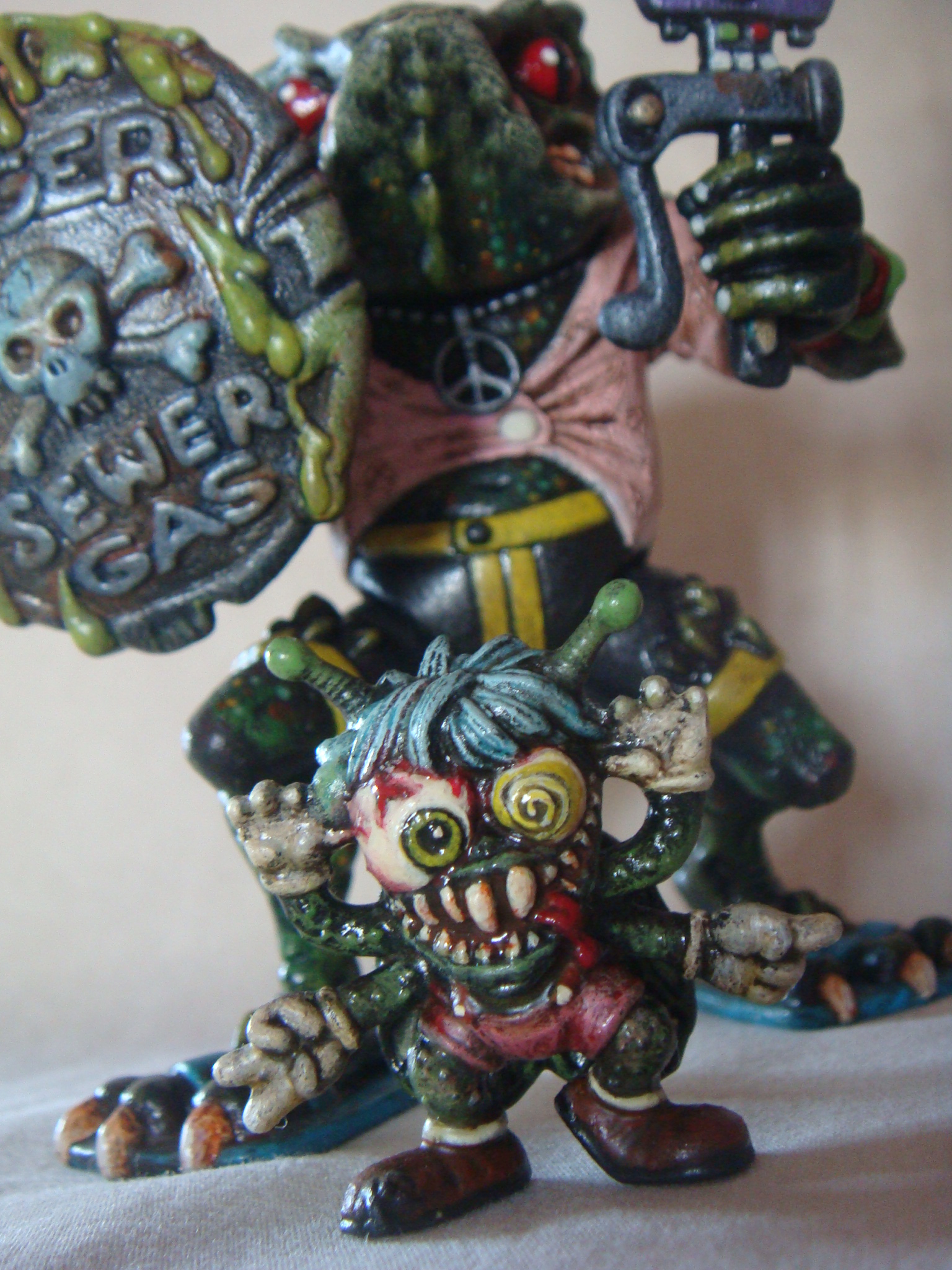 Inventor of the "hop, skip and a jump" attack formation. Napoleon Bonafrog employs his strategic swamp senses to outwit Shredder's mindless minions. Forever followed by Flyboy, his Mutant Fly Friend, Napoleon drafts his bug buddy into service as a swamp spy. And when Flyboy feeds Napoleon the facts, the fearless frog fights the Foot with his Foot-swatter and Serpent Slasher. Protected by his horny toad armor, Napoleon Bonafrog puts the Foot down for peace.