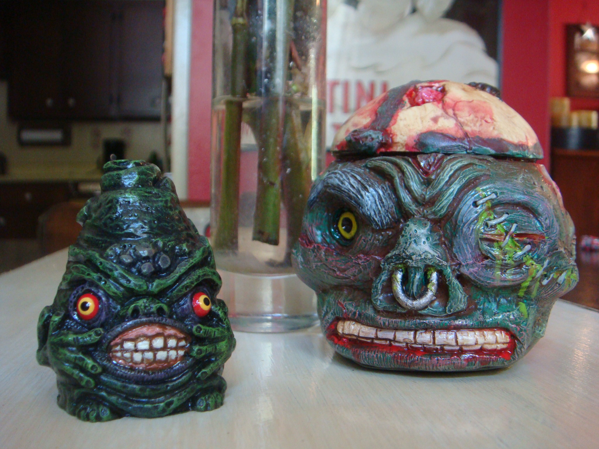 I sculpted these fellows to resemble the gross and weird toys from my childhood. Shitfer Brain is my take on Madballs, except the top of his skull can be removed to reveal a turd named Buddy Dung living snugly where his brain should be.