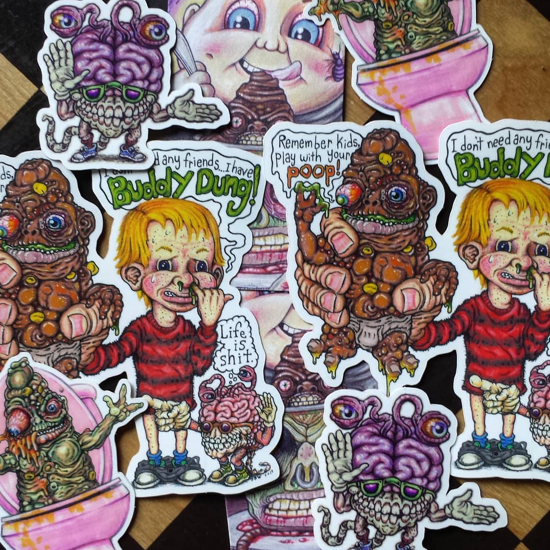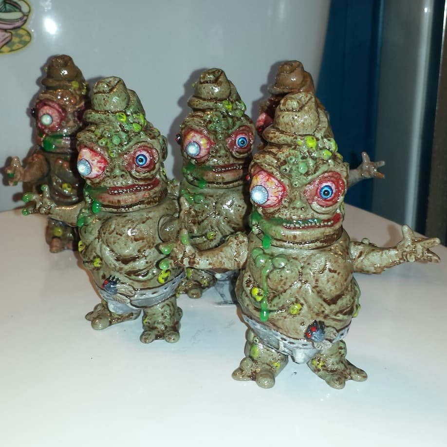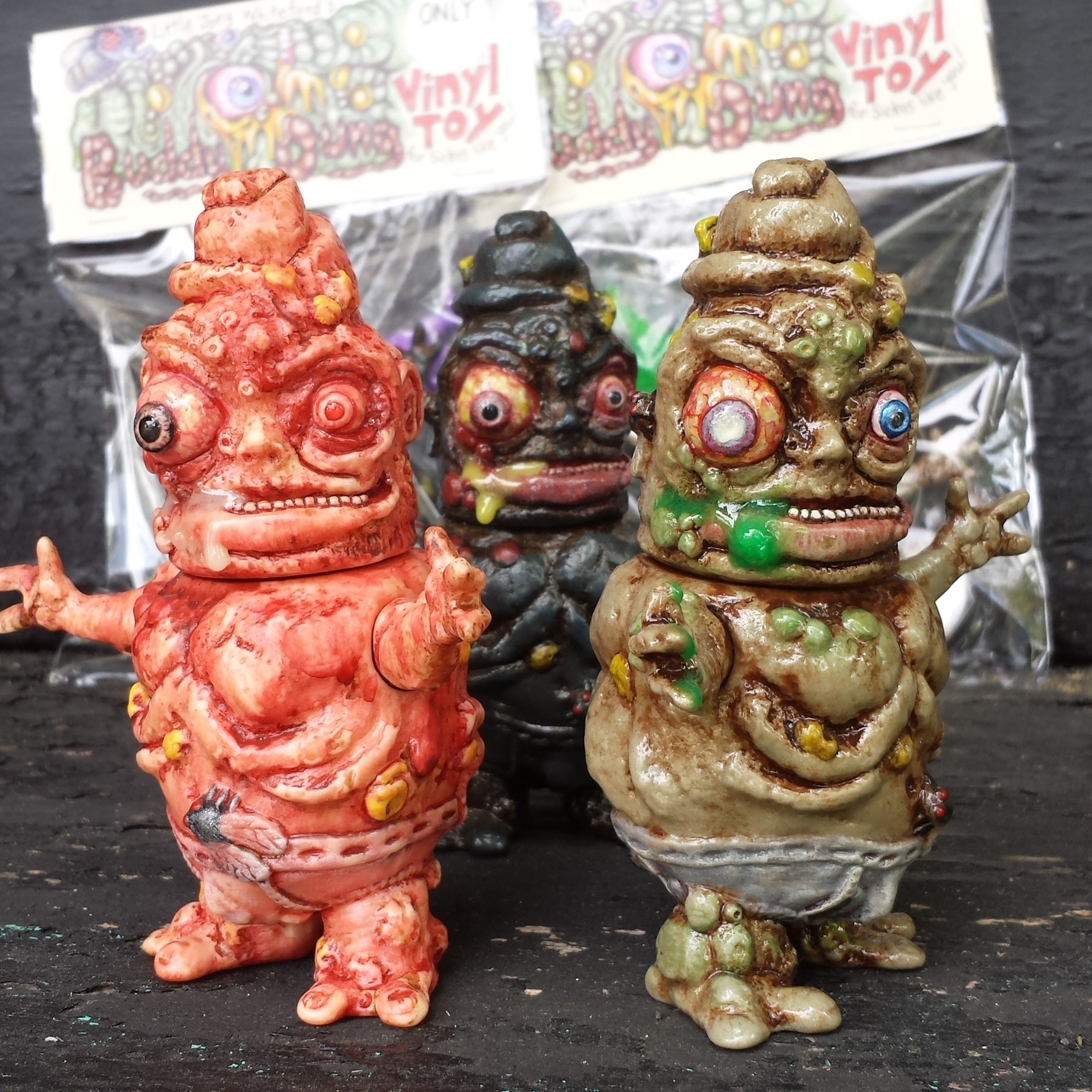 This is my Buddy Dung figure produced in Japanese Vinyl with paints and resin added by me. He comes bagged with header, along with stickers, button, and BrainWaves mini figure.