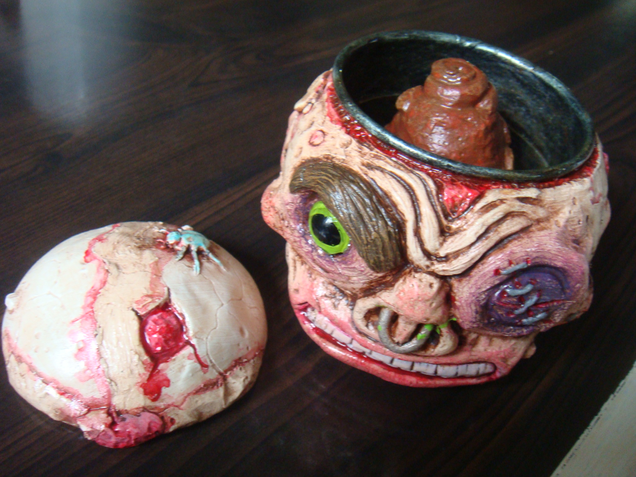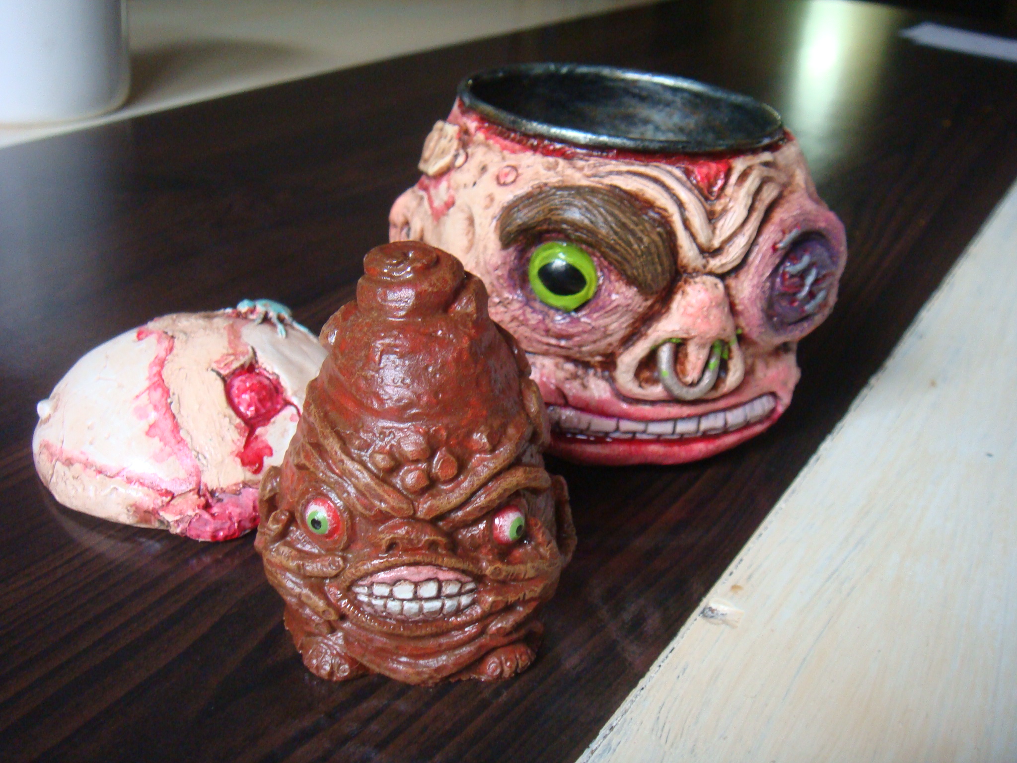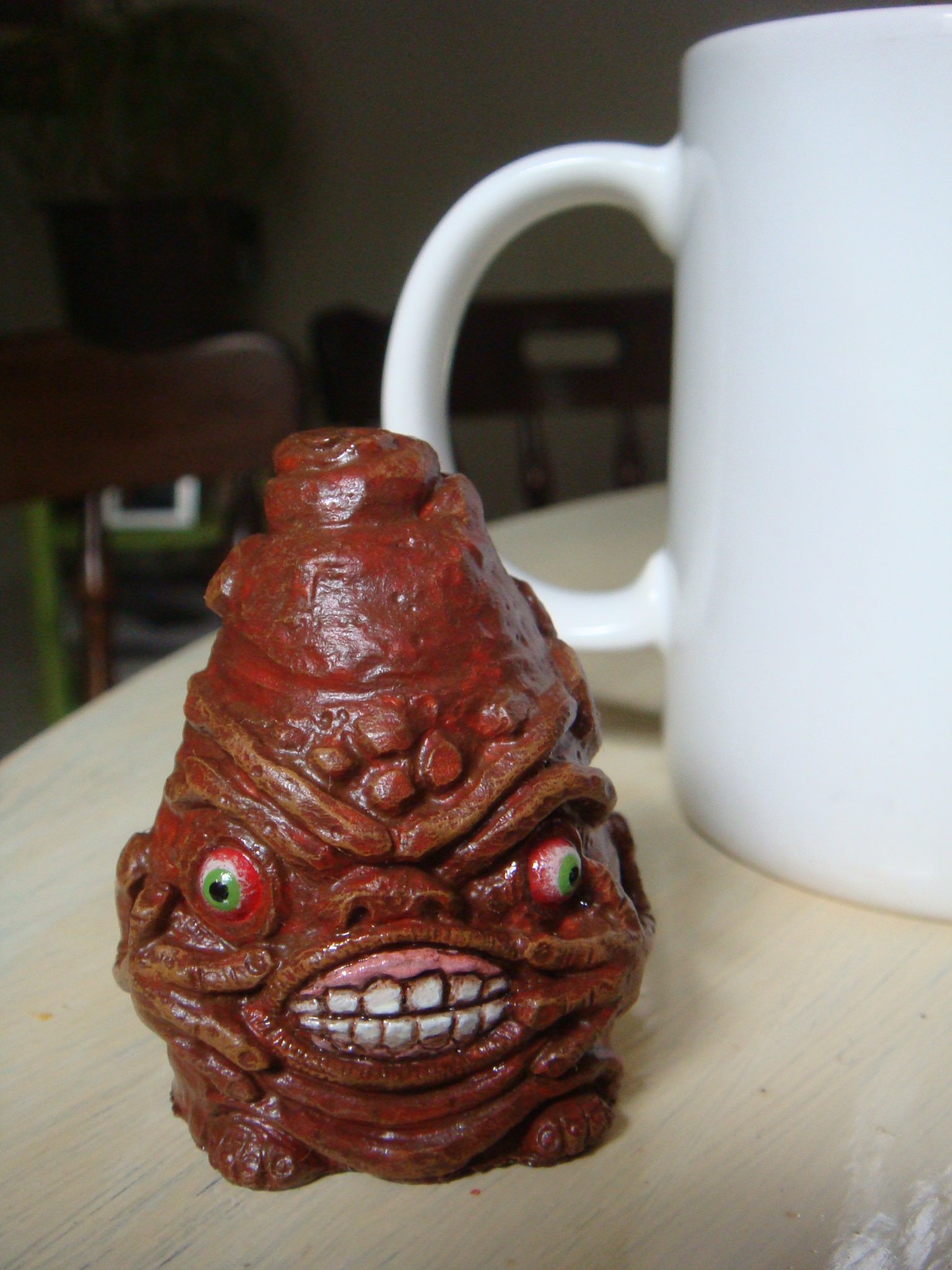 I sculpted these fellows to resemble the gross and weird toys from my childhood. Shitfer Brain is my take on Madballs, except the top of his skull can be removed to reveal a turd named Buddy Dung living snugly where his brain should be.