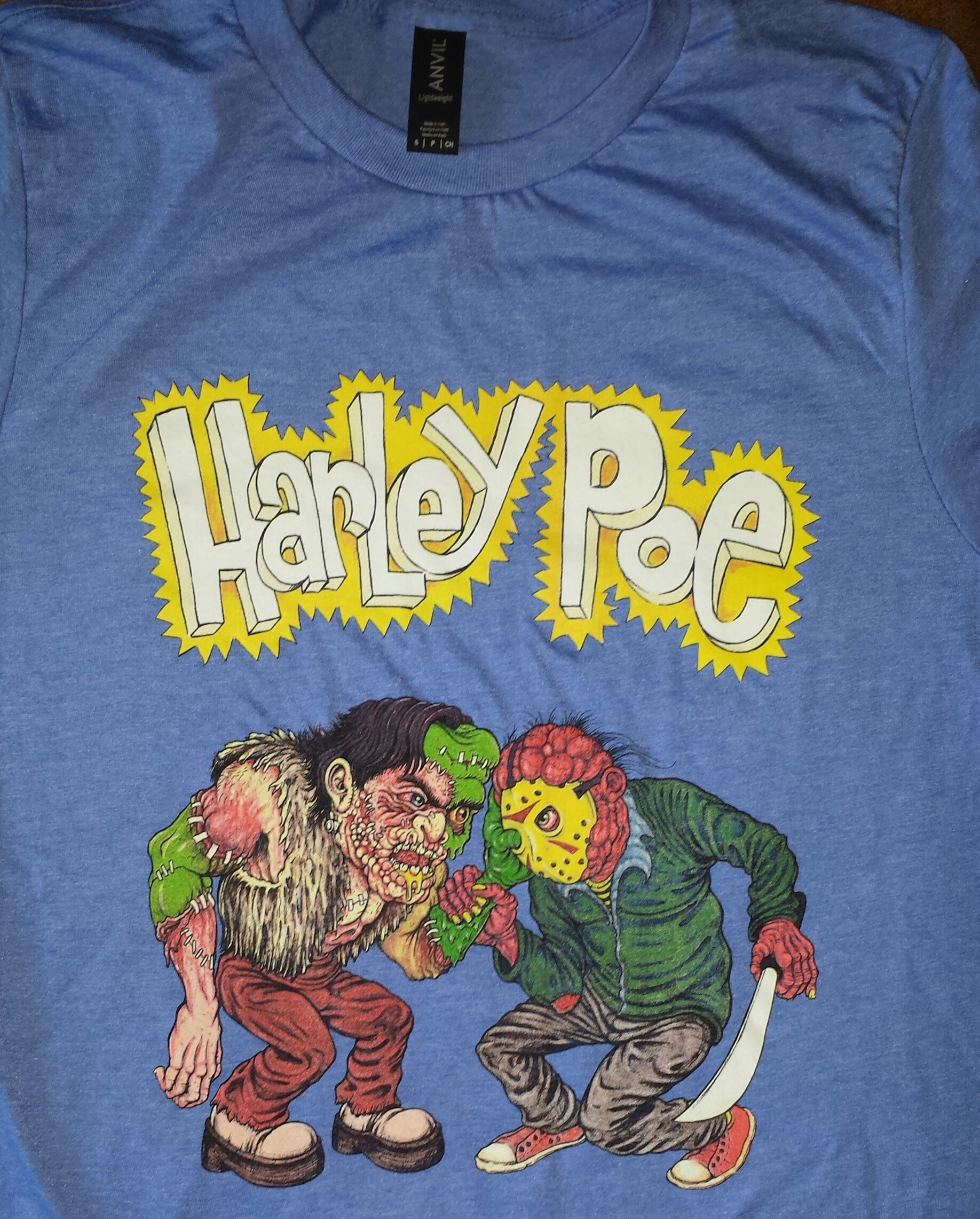 These are the shirts printed by Cheapie Squeegee that were supposed to be available for the 2020 April Harley Poe tour with The Homeless Gospel Choir, but that tour is postponed until November. So here ya go. Limited sizes. Only 120 shirts. Please allow a couple weeks for delivery. Designed by Joe Whiteford.