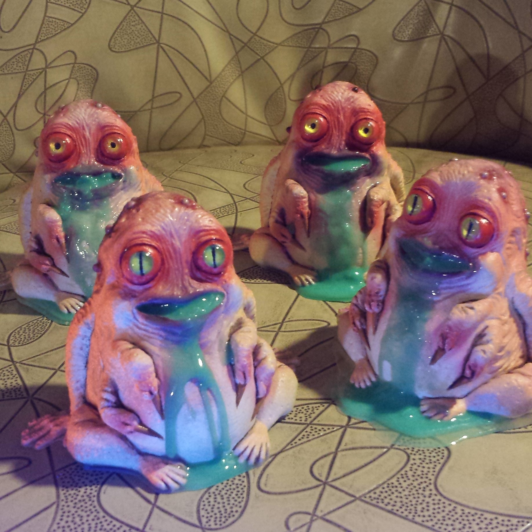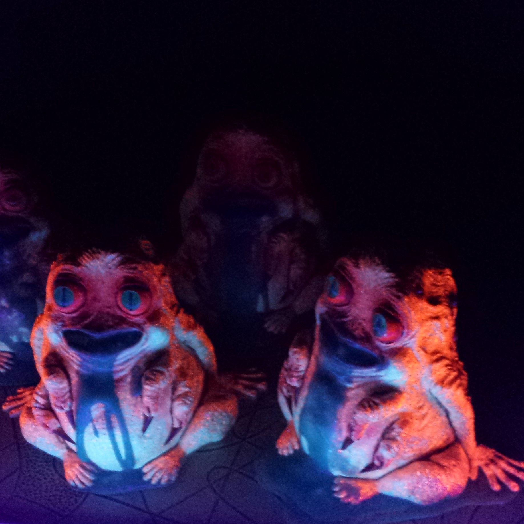 This Bug Eater is black light sensitive and is limited to 6 pieces, 4 of which are available here. Solid resin painted with sprays and acrylics.