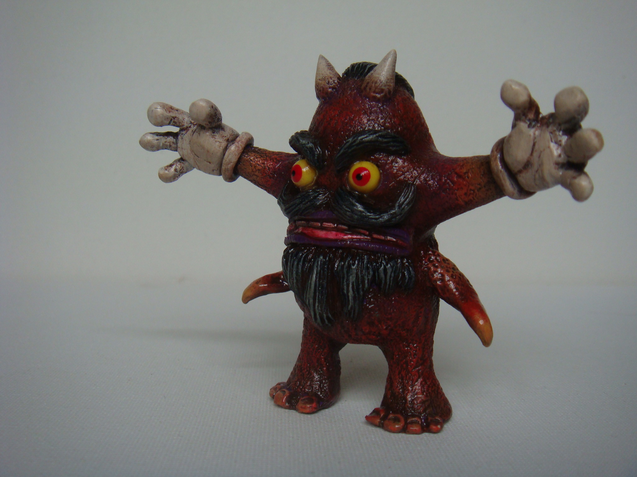 Here is my one of a kind 3" Devil figure sculpted from polymer clay and painted with acrylics. He is one of my first attempts at creating a mini figure. Now he can be yours!