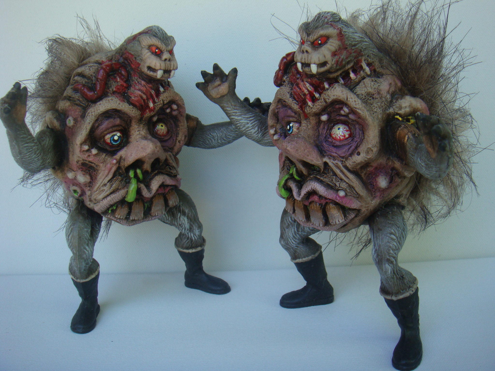 This is Grizzle. He is a member of the Evil Head group. He is also one of three or four (possibly five) non articulated resin figures I'll be releasing in my spare time. I'm not one to bootleg or use parts that were sculpted by other artists, but this series is an exception due to the title I've chosen for these guys. This guy is a parody of the He-Man series I used to watch as a child, but he's also a love letter to the He-Man figures and to many other toys and movies that influenced when I was young, so I wanted to use parts from the actual toys. Imagine a Mad Scientist throwing together a creation made from the parts of Madballs or Weird Balls, He-Man action figures, and happy trolls, all while watching California Raisin commercials and an unhealthy amount of zombie movies and other horror films such as John Carpenter's The Thing, Gremlins, and films like Don Dohler's The Alien Factor. This should give you an idea as to where I'm coming from.