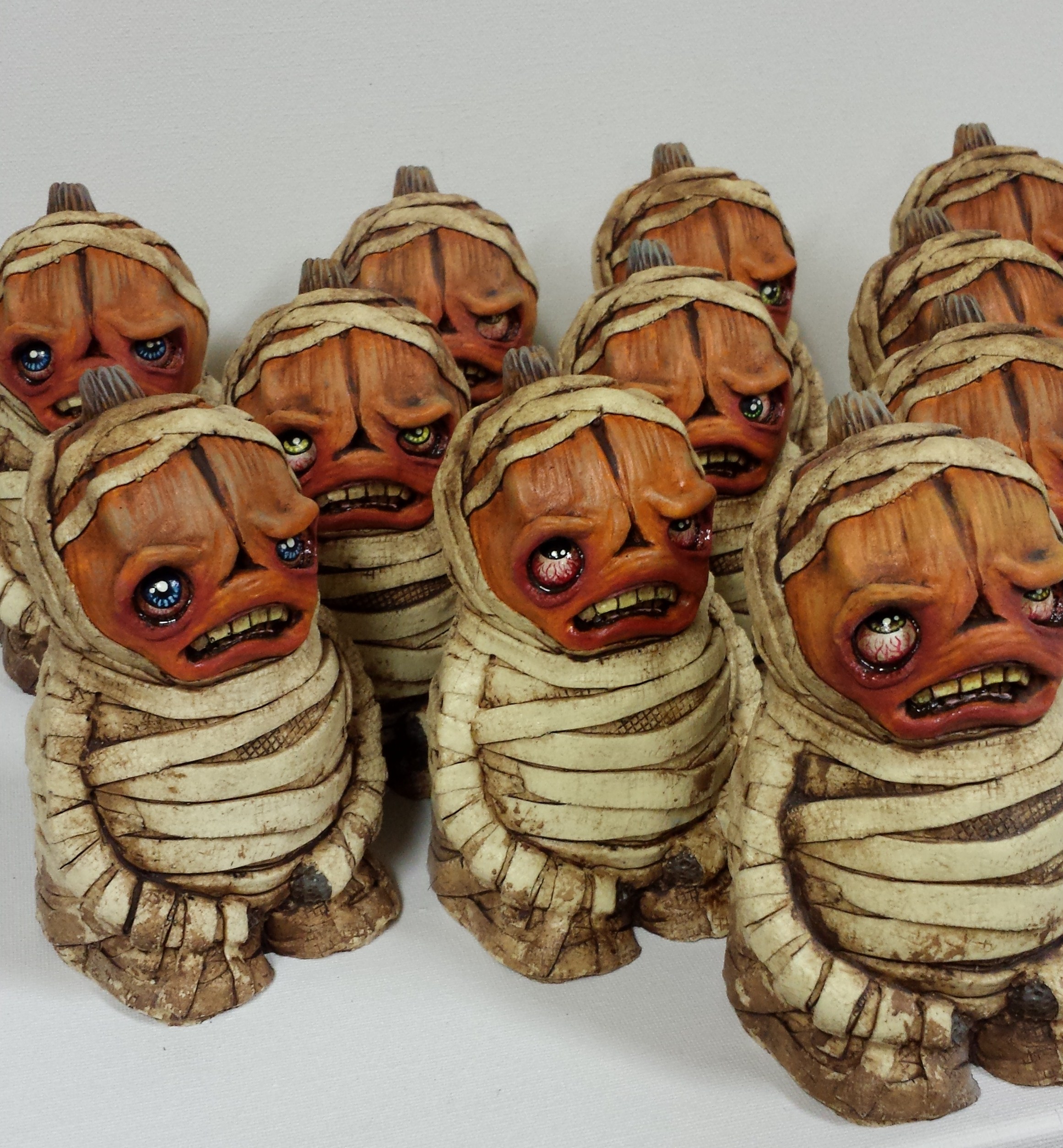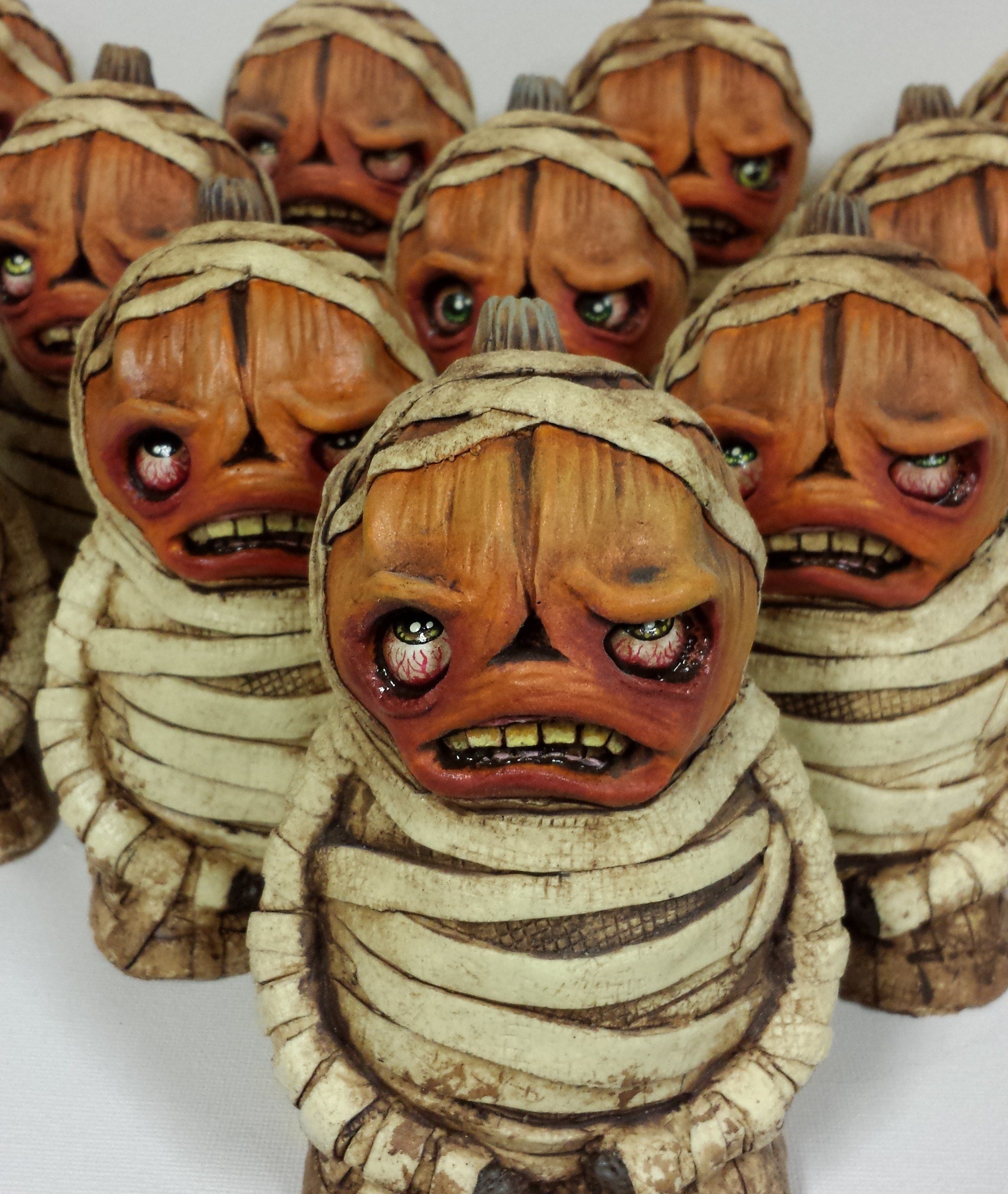 Solid resin hand painted Mumpkins available for Halloween. This little guy was sculpted and cast by me and only 7 were made available until now. Each will come with a Halloween greeting card with new original art. Here's your chance to grab one, for these Mumpkins will only be available for a short time. Orders will be shipped in September.